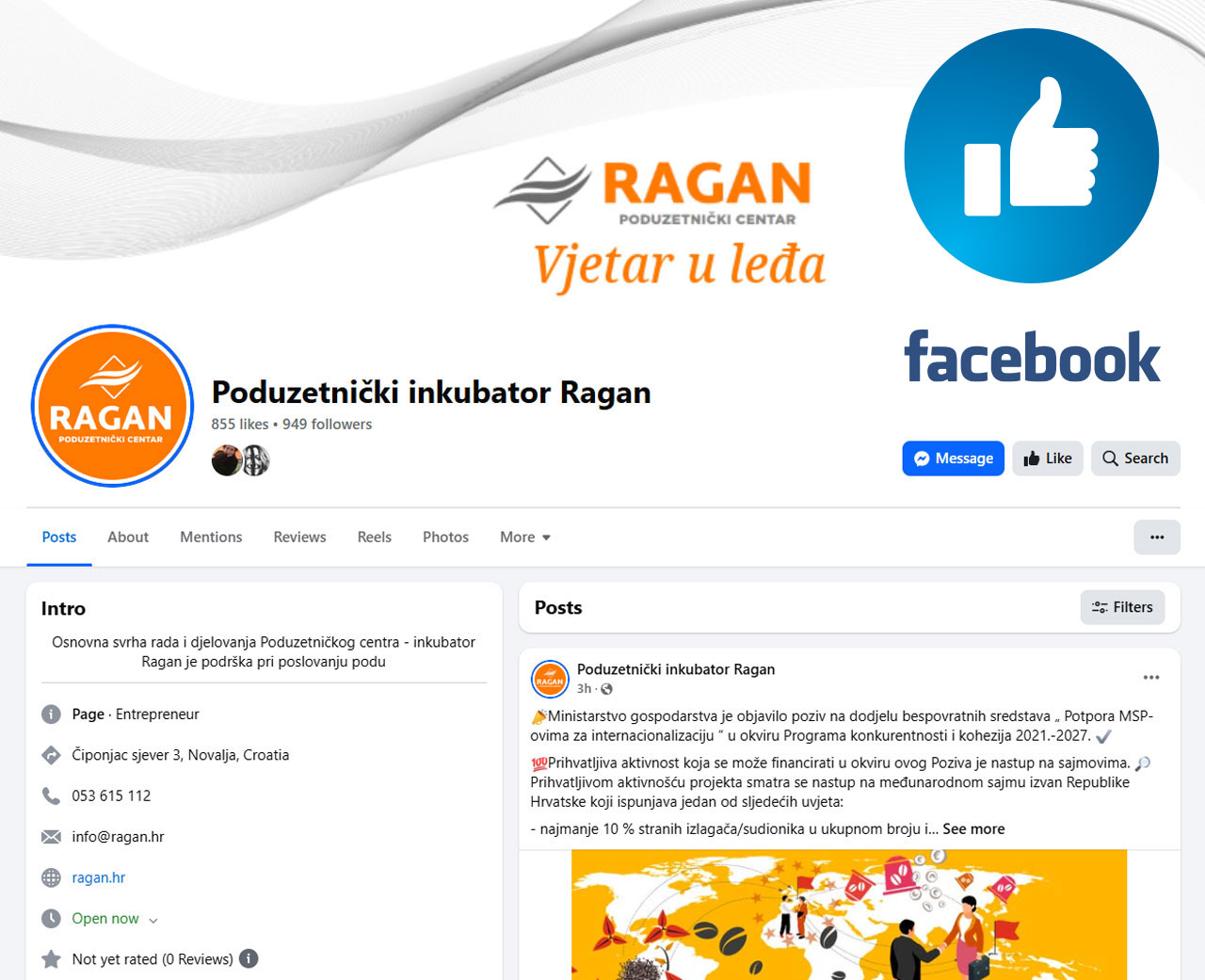 Aktualne novosti o natječajima i događanjima u našem Poduzetničkom centru Ragan popratite na našoj Facebook stranici